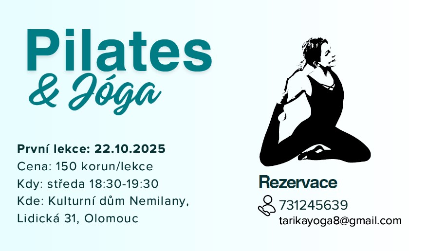 Od 22. 10. 2025, každou středu od 18:30 do 19:30, si můžete s paní Táňou přijít zacvičit Pilates. 🌿